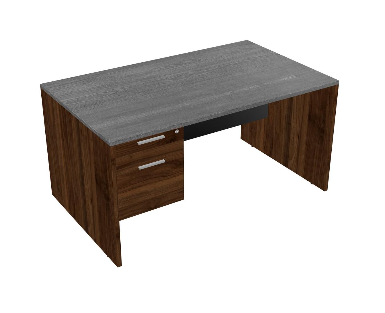Grey Rectangular Office Desk Plus Columbia Walnut Hanging Drawers