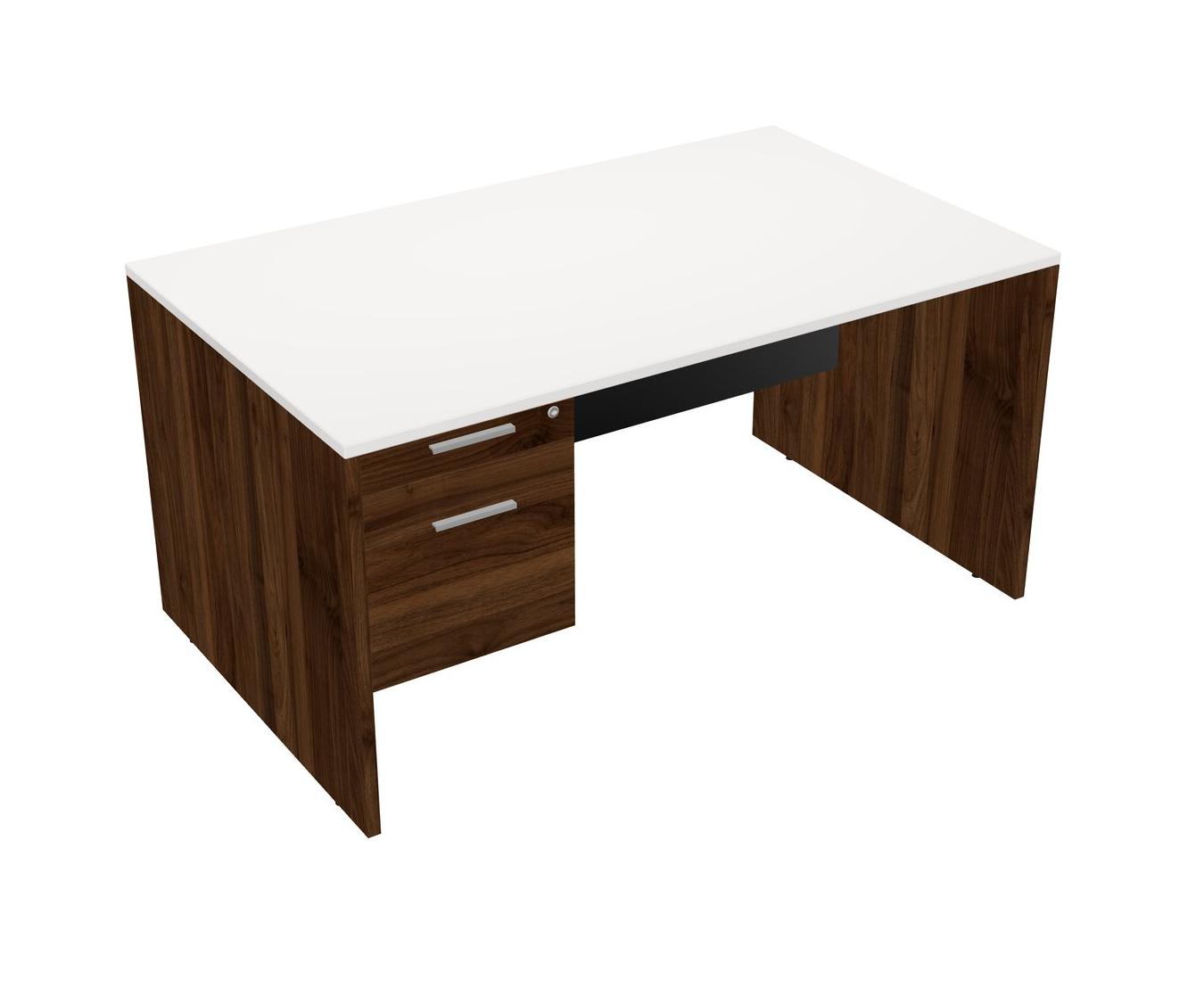 White Rectangular Office Desk Plus Columbia Walnut Hanging Drawers