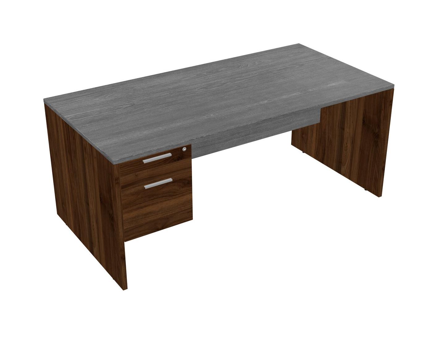 Grey Rectangular Office Desk Plus Columbia Walnut Hanging Drawers