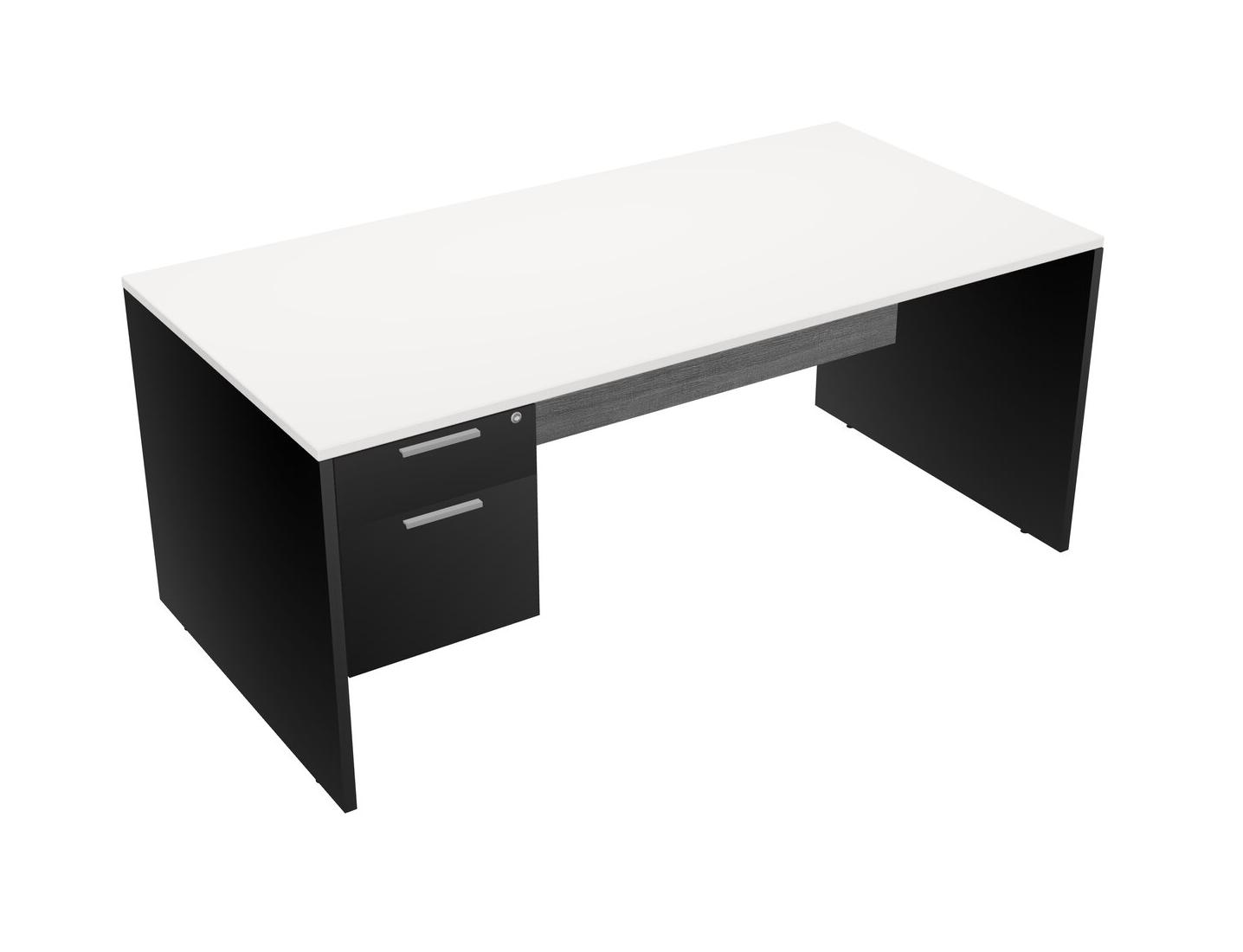 White Rectangular Office Desk Plus Black Hanging Drawers