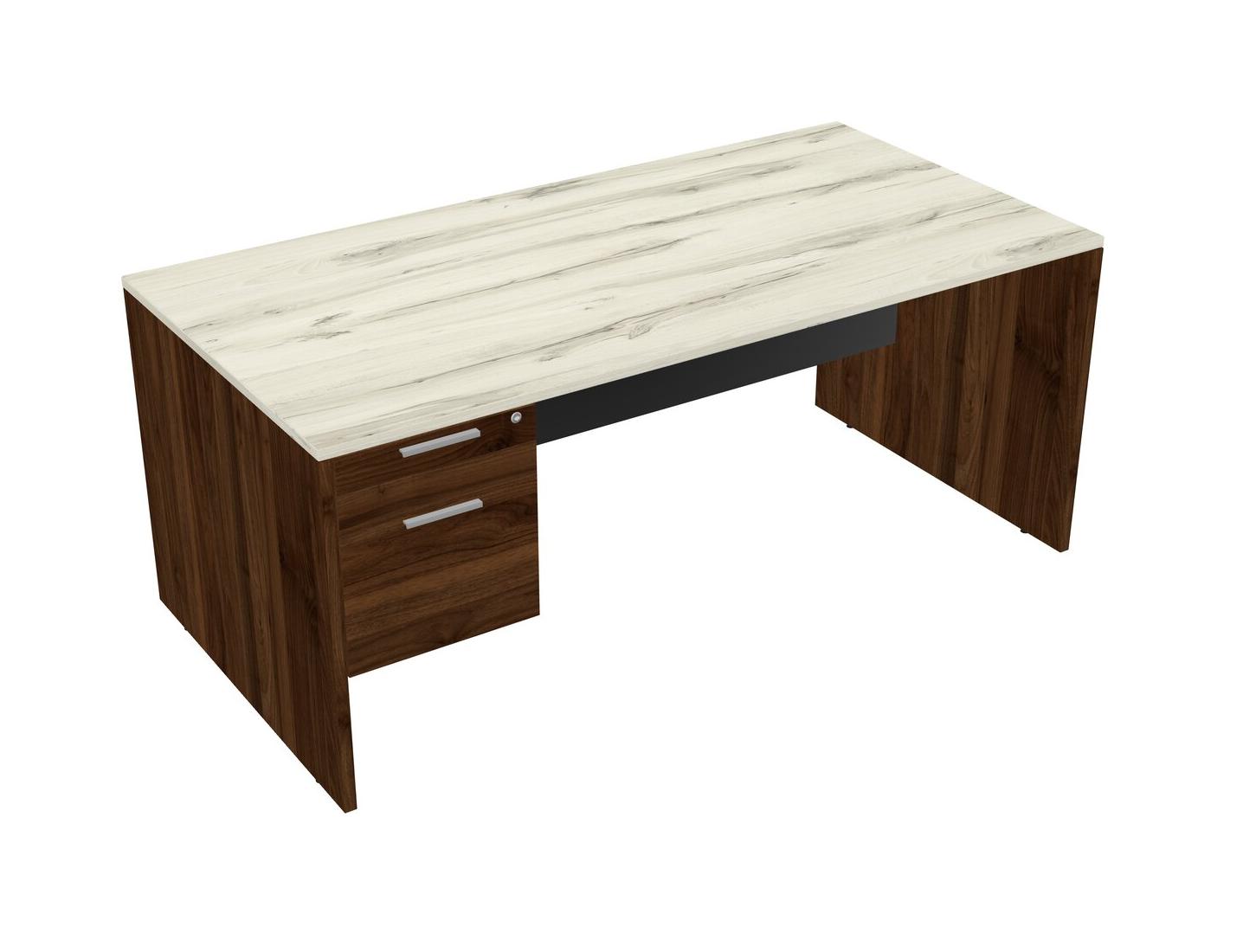 Heinne Holz Rectangular Office Desk Plus Columbia Walnut Hanging Drawers