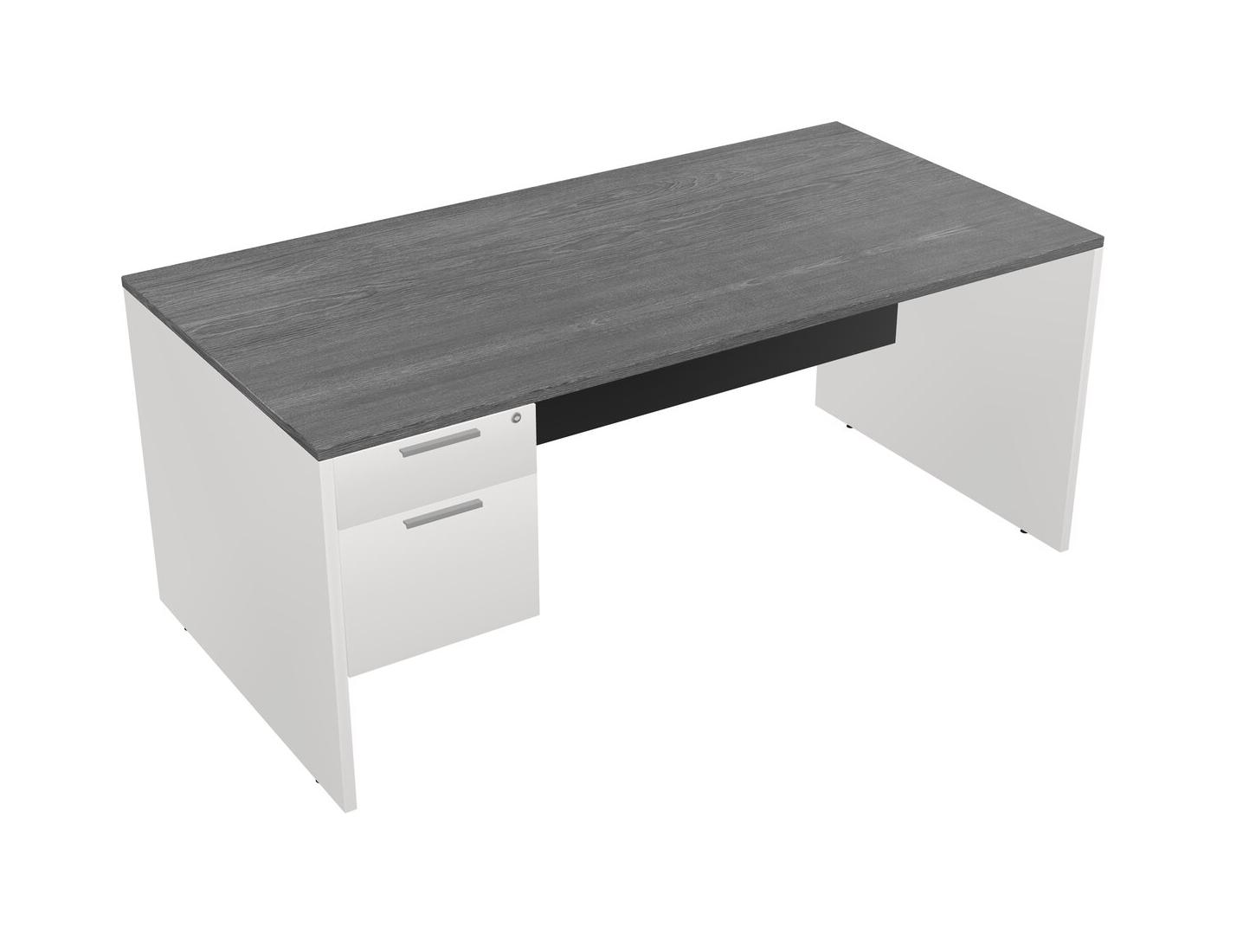 Grey Rectangular Office Desk Plus White Hanging Drawers