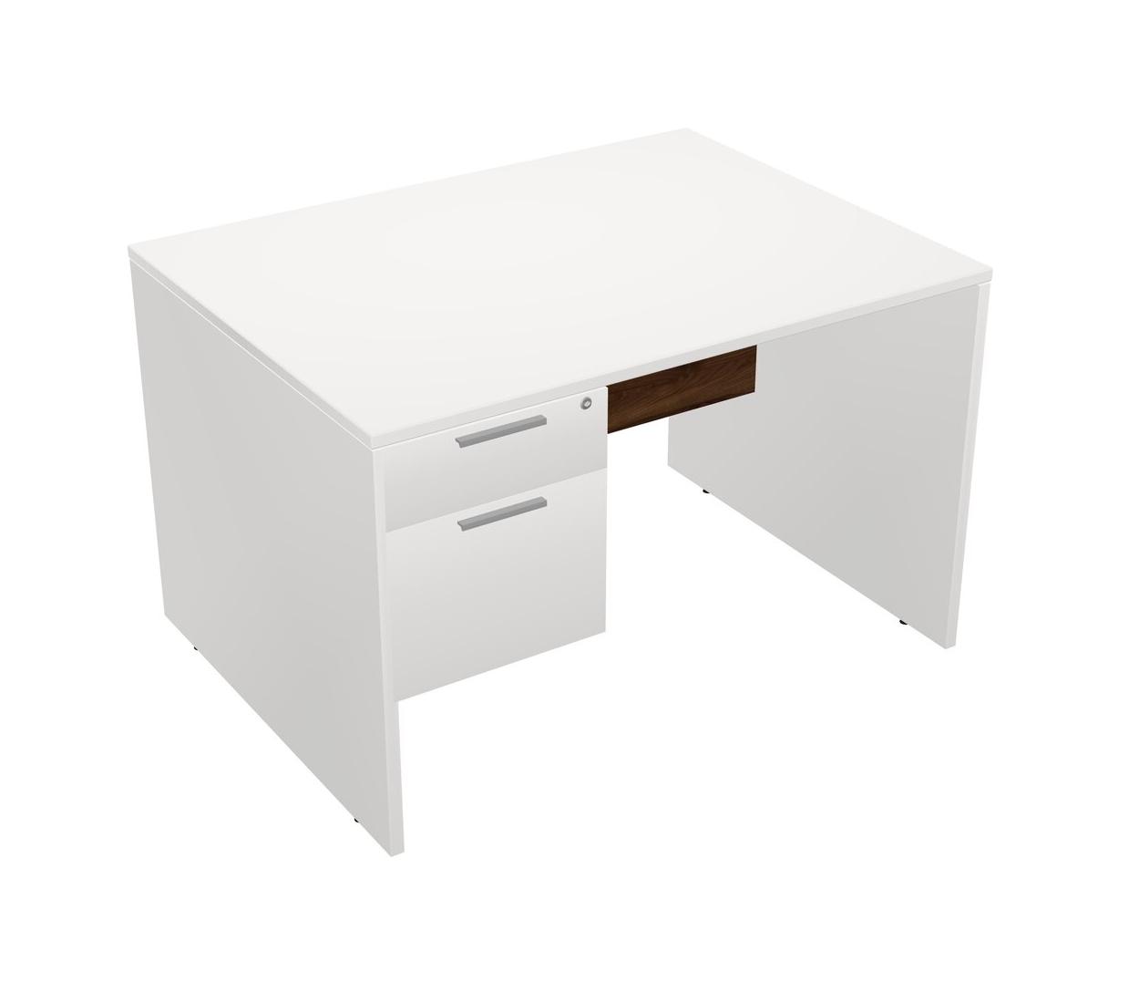 White Rectangular Office Desk Plus White Hanging Drawers