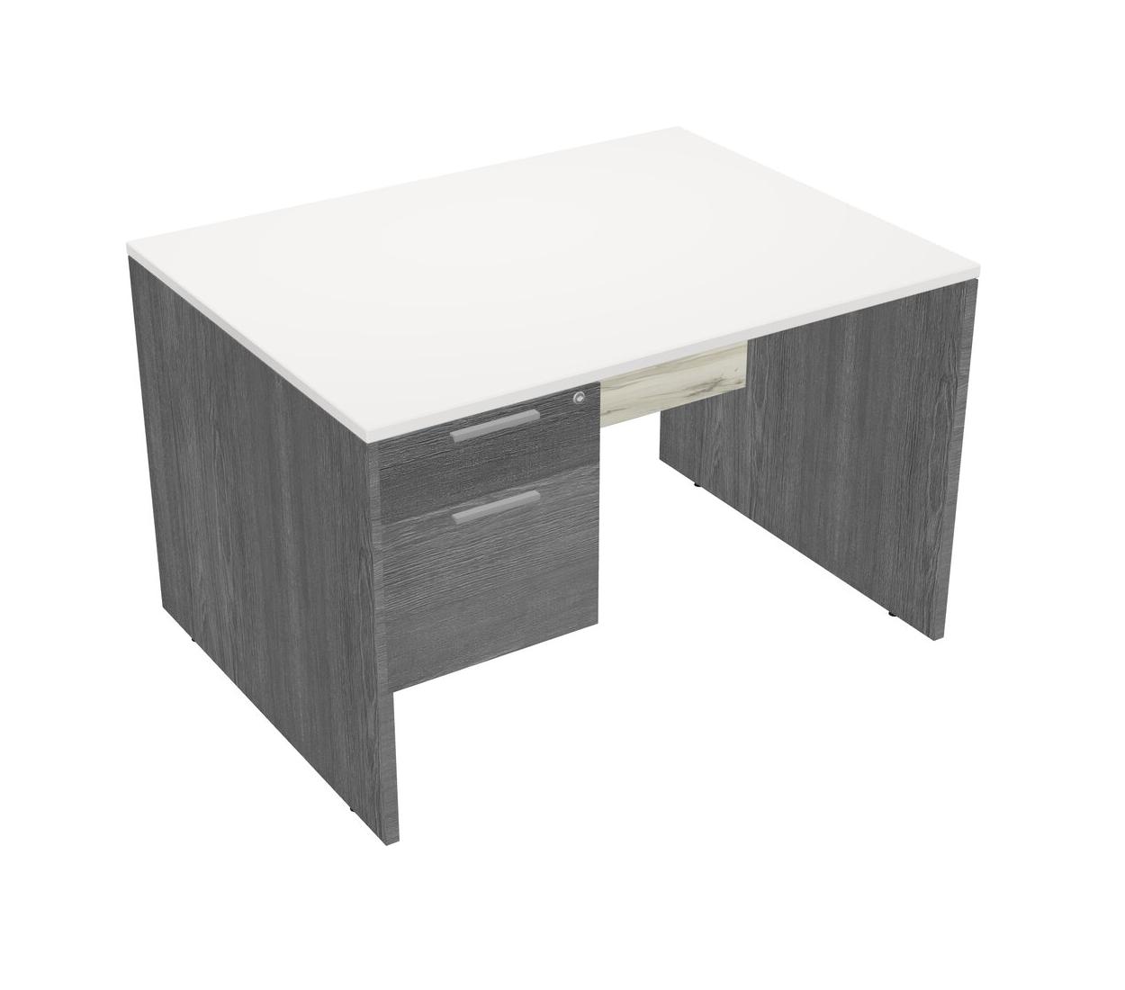 White Rectangular Office Desk Plus Grey Hanging Drawers