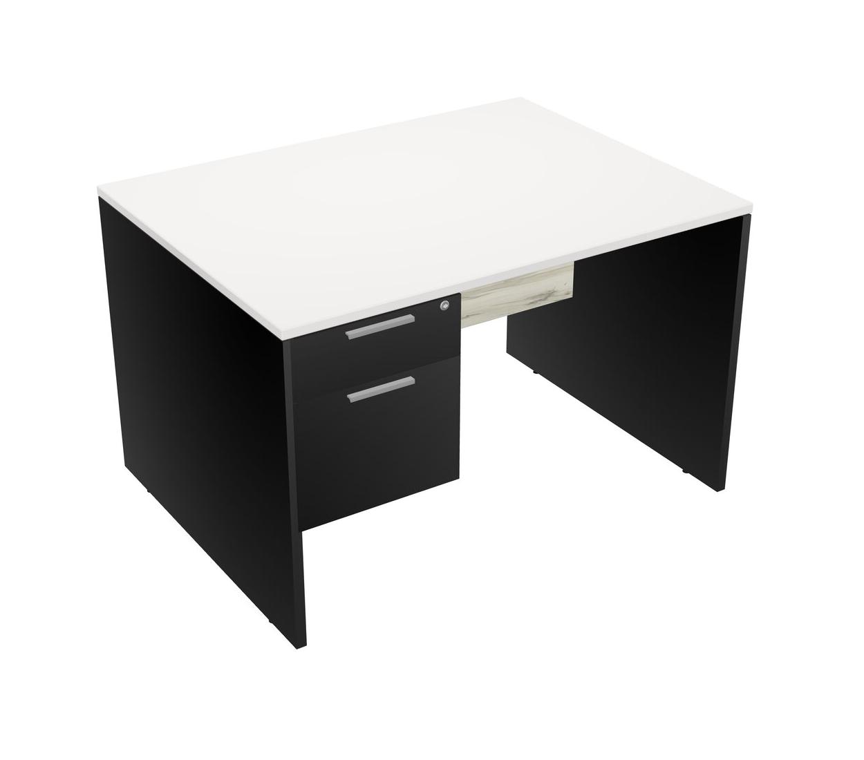 White Rectangular Office Desk Plus Black Hanging Drawers