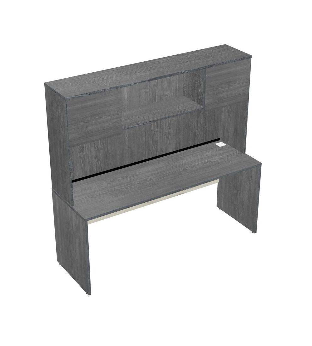 Grey Rectangular Office Desk And Grey Hutch