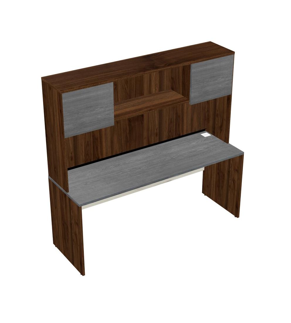 Grey Rectangular Office Desk And Columbia Walnut Hutch