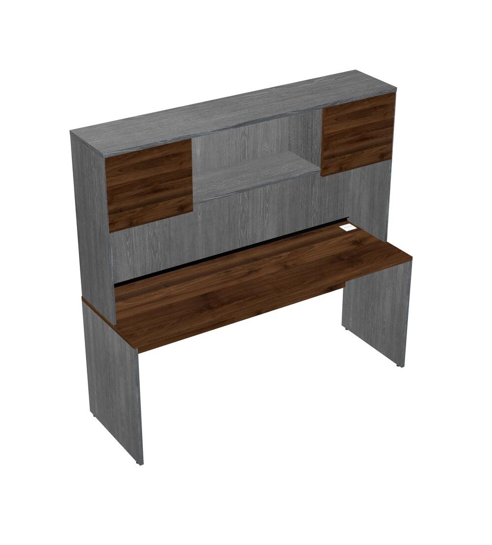 Columbia Walnut Rectangular Office Desk And Grey Hutch