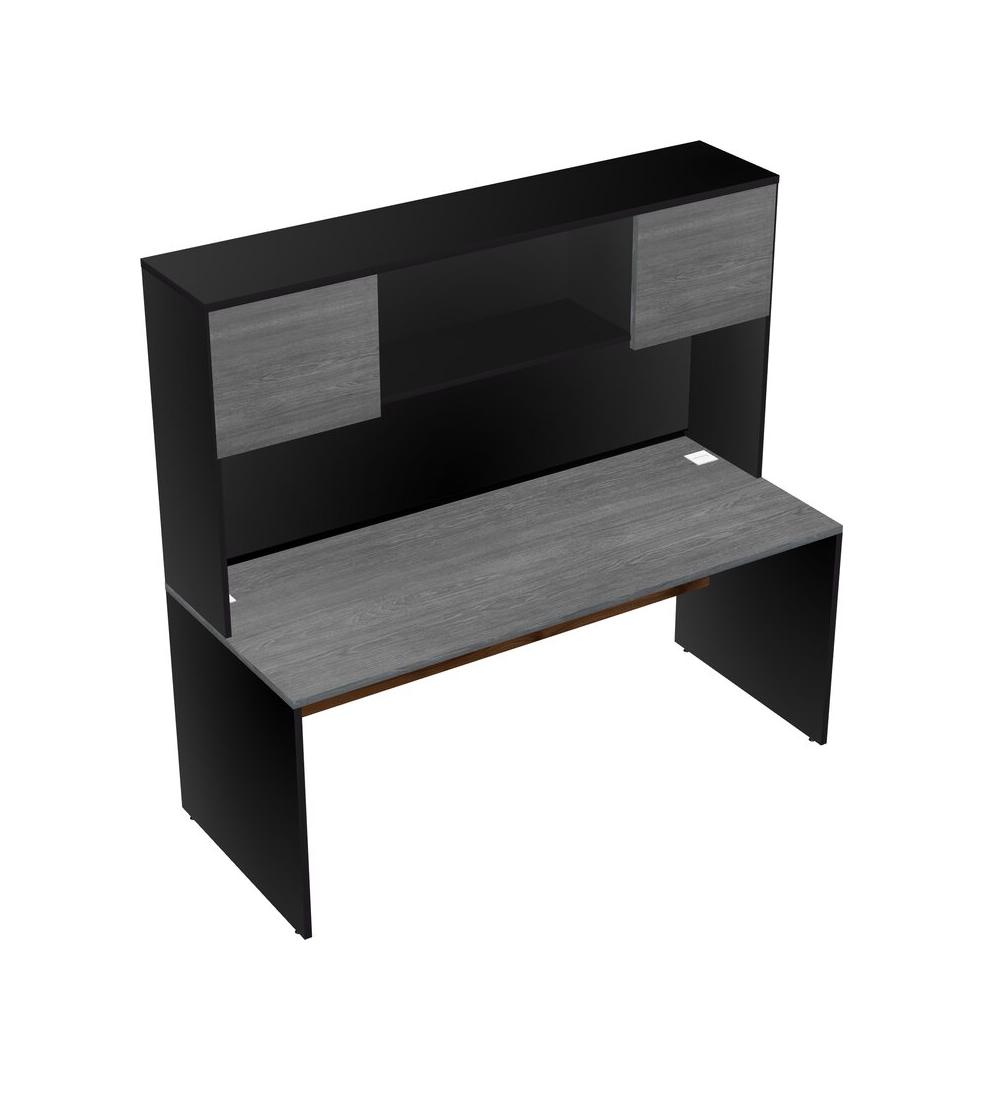 Grey Rectangular Office Desk And Black Hutch