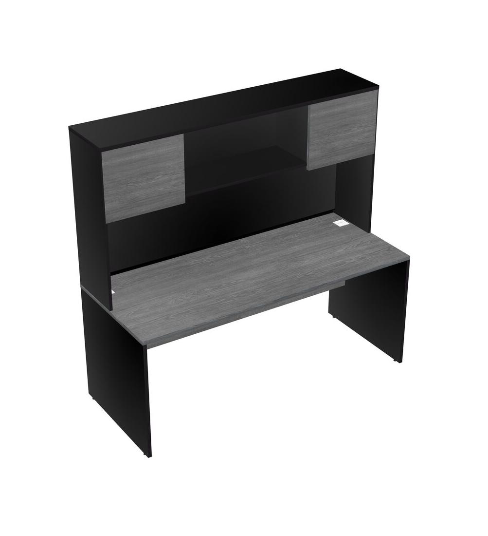 Grey Rectangular Office Desk And Black Hutch