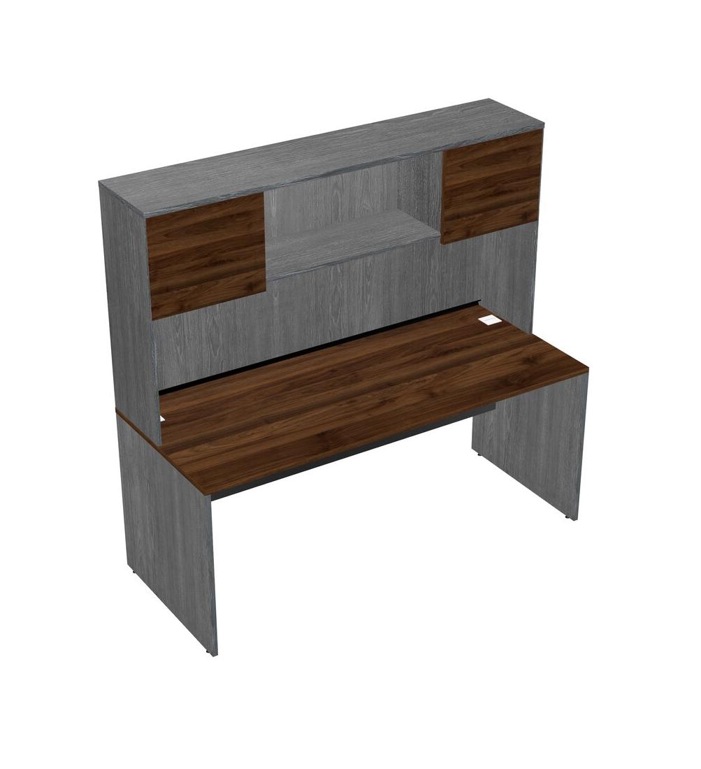 Columbia Walnut Rectangular Office Desk And Grey Hutch