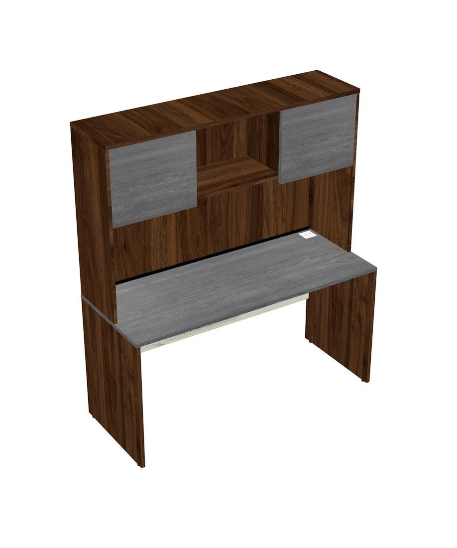 Grey Rectangular Office Desk And Columbia Walnut Hutch