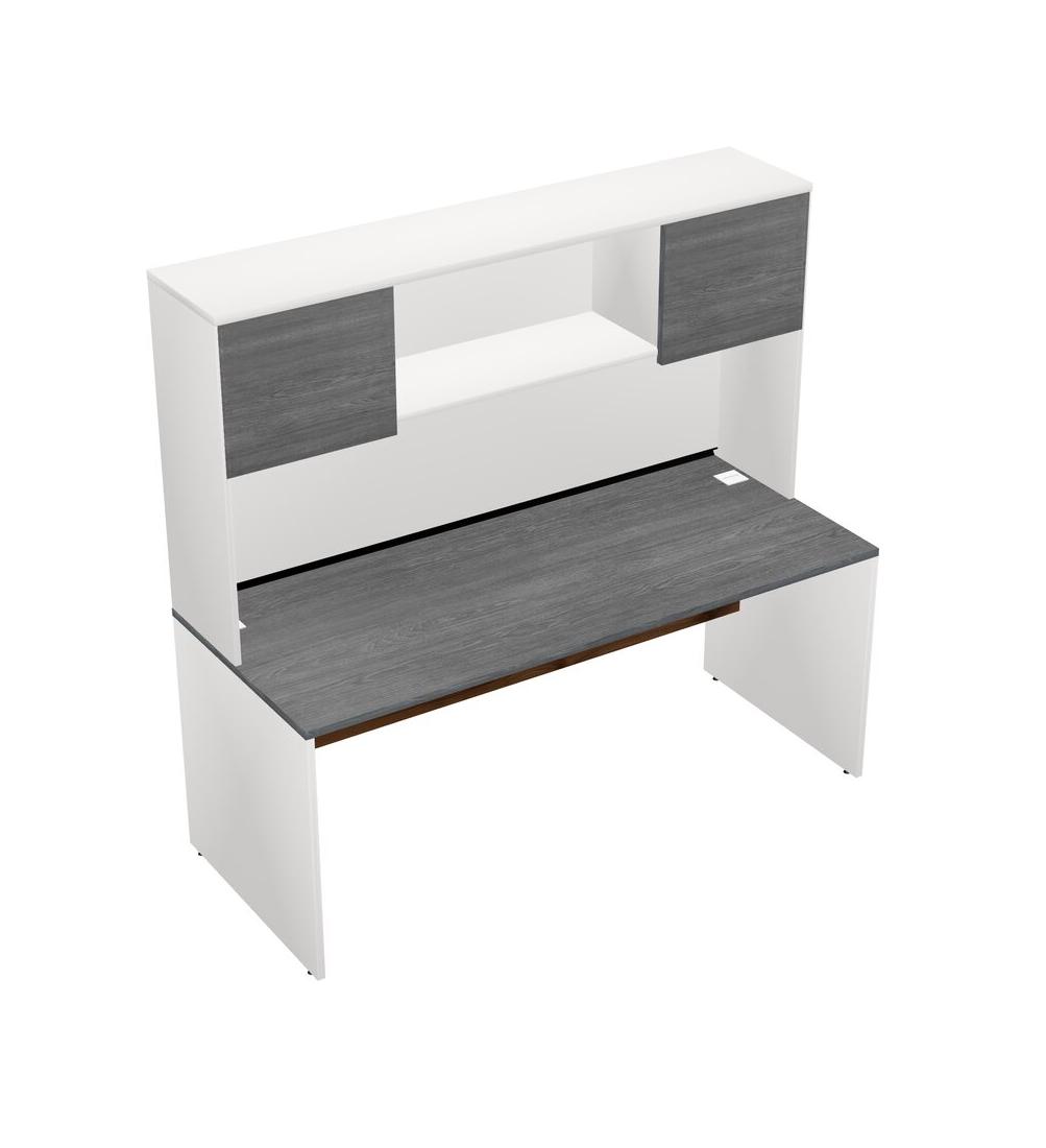 Grey Rectangular Office Desk And White Hutch