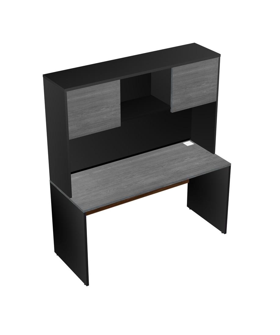 Grey Rectangular Office Desk And Black Hutch