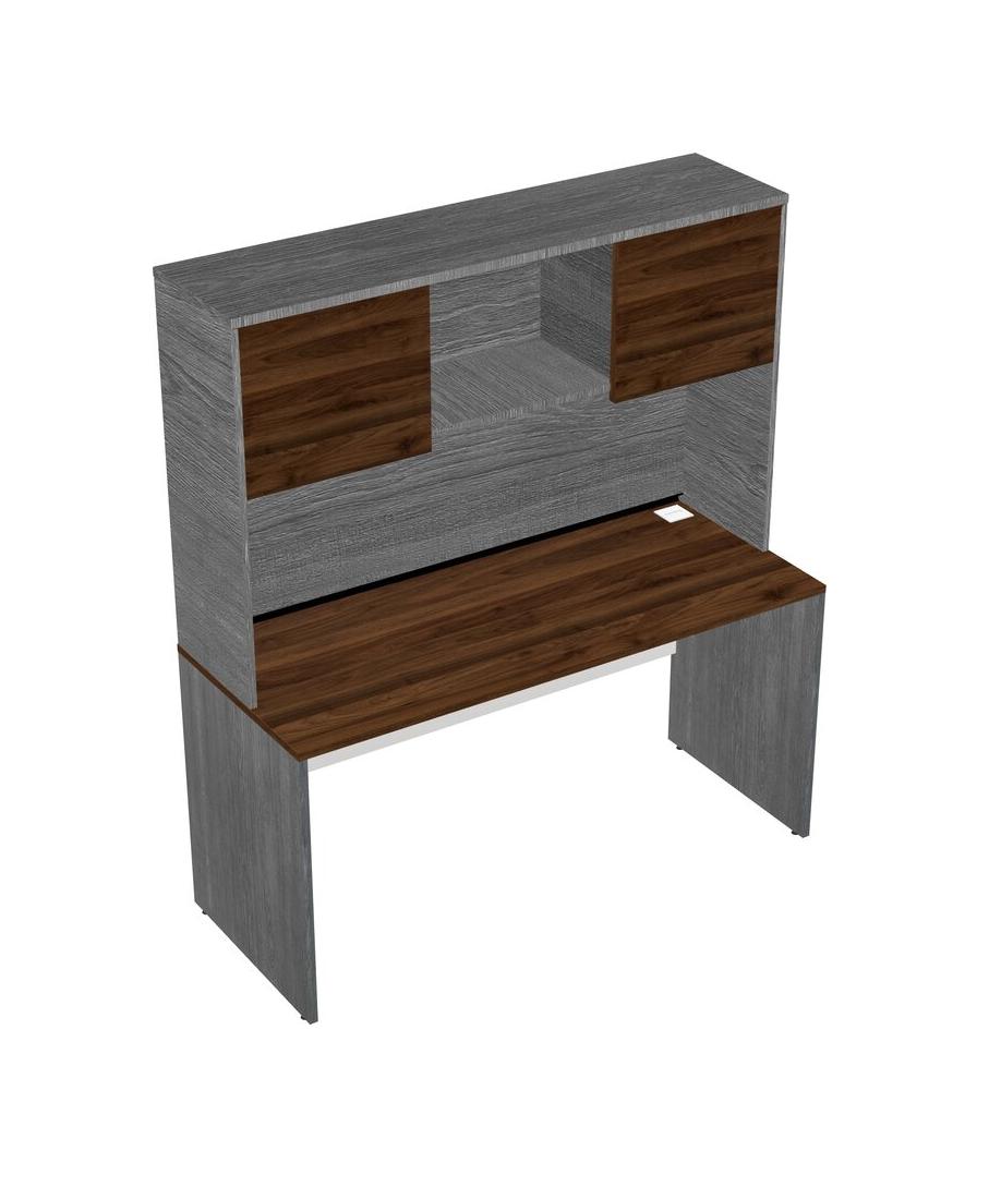 Columbia Walnut Rectangular Office Desk And Grey Hutch