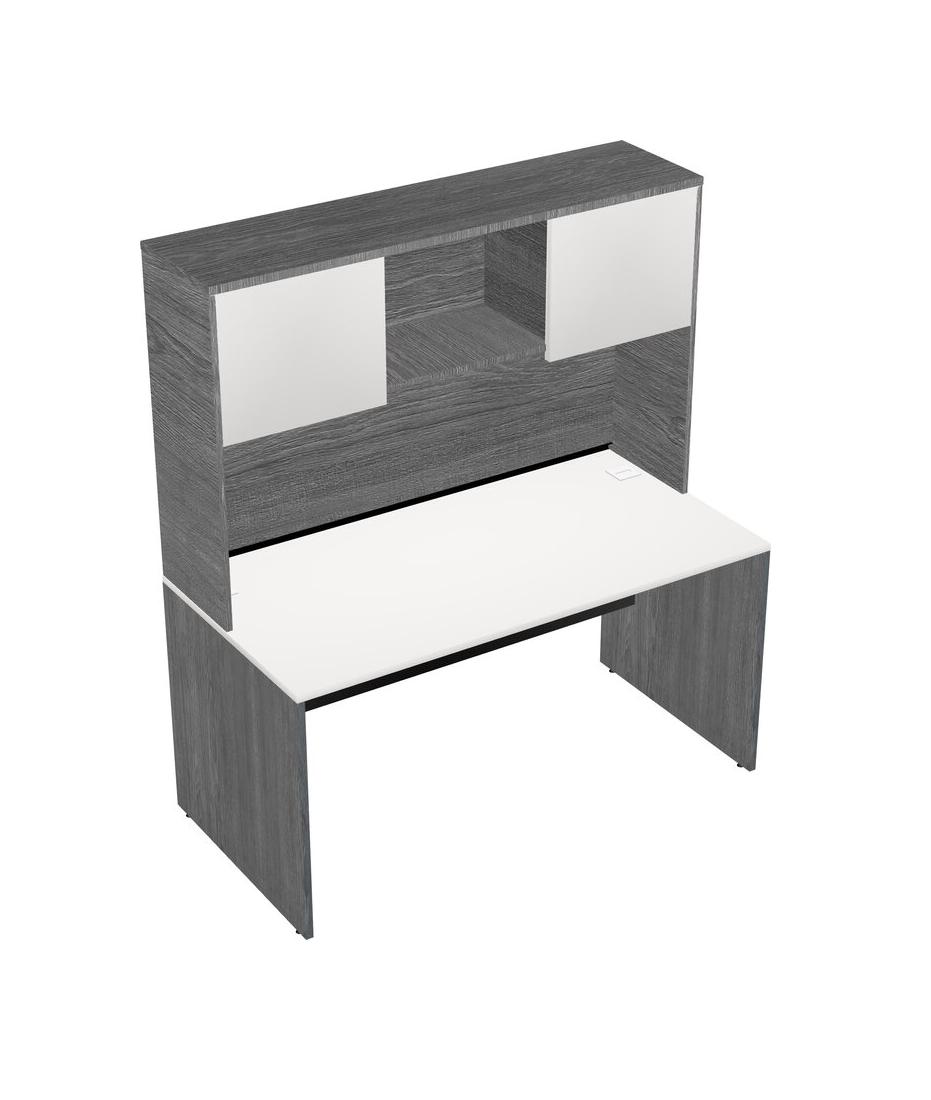 White Rectangular Office Desk And Grey Hutch