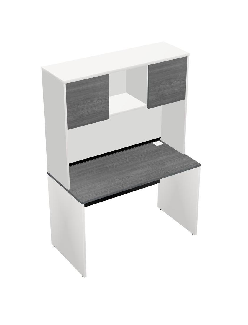 Grey Rectangular Office Desk And White Hutch