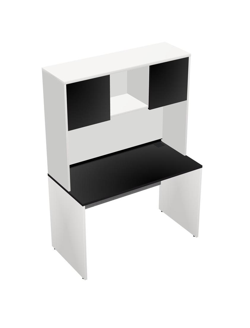 Black Rectangular Office Desk And White Hutch
