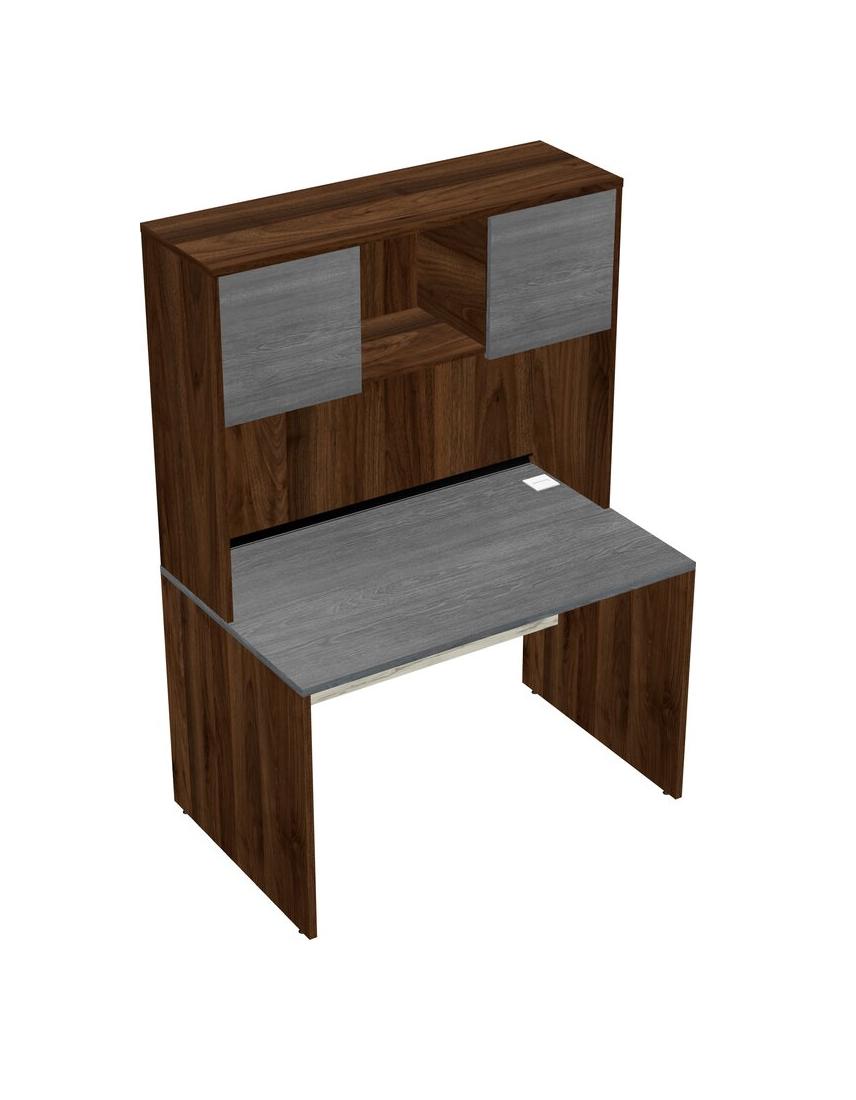 Grey Rectangular Office Desk And Columbia Walnut Hutch