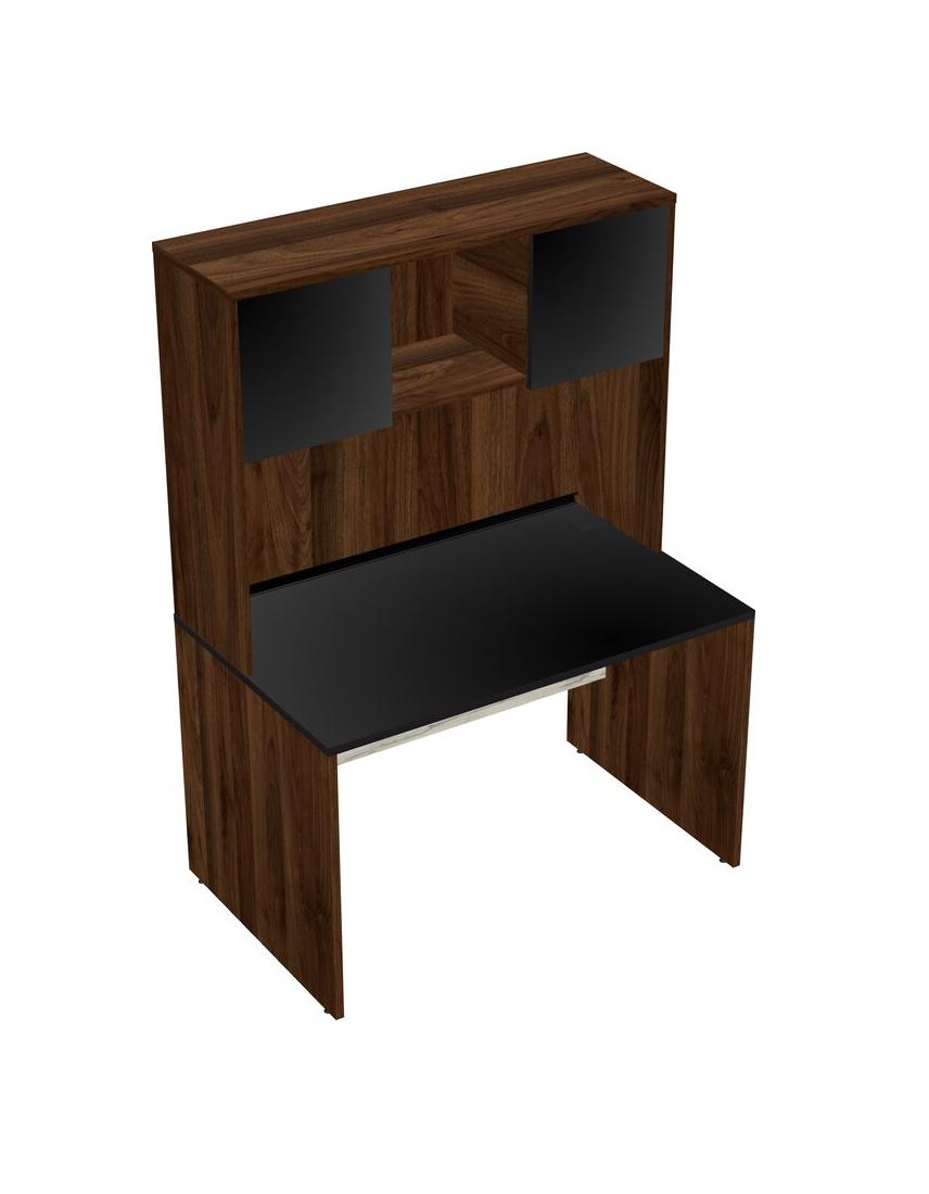 Black Rectangular Office Desk And Columbia Walnut Hutch