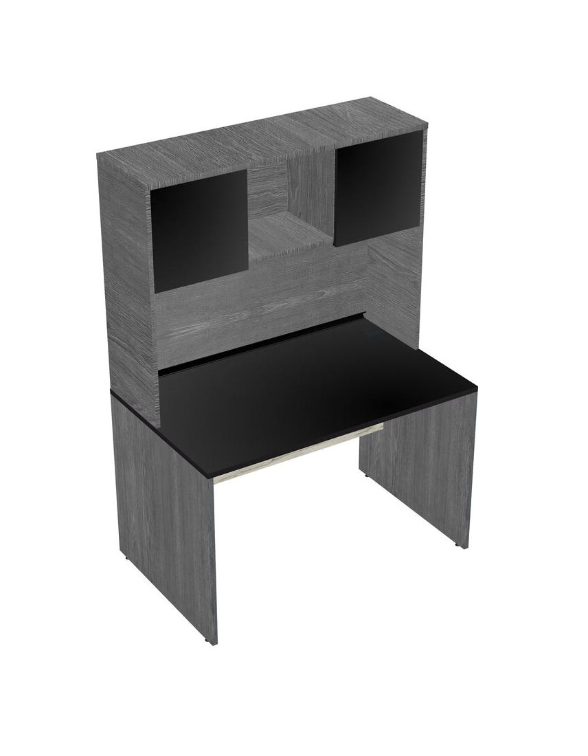 Black Rectangular Office Desk And Grey Hutch