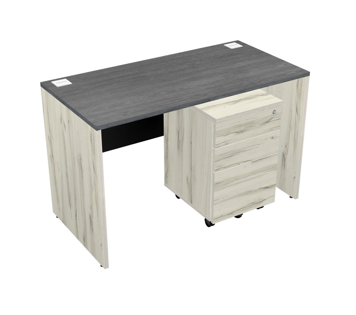 Grey Rectangular Office Desk Plus Heinne Holz Wooden Mobile Drawers