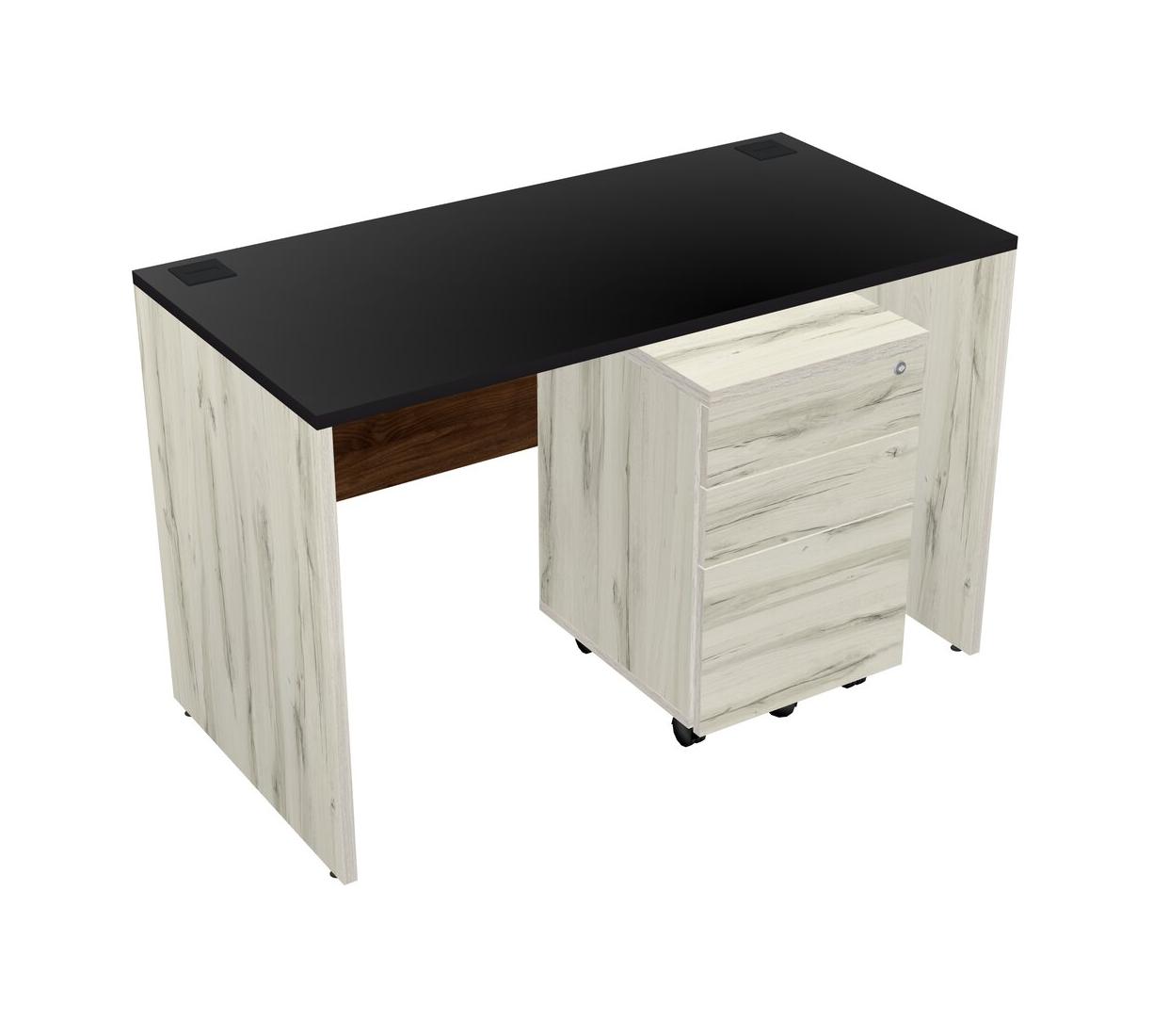 Black Rectangular Office Desk Plus Heinne Holz Wooden Mobile Drawers