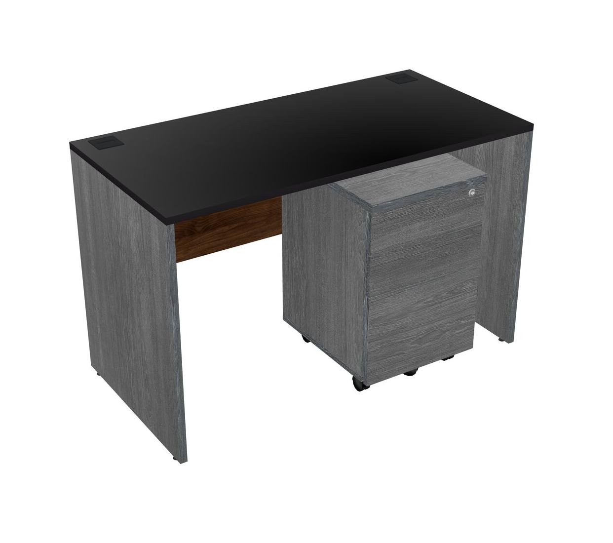 Black Rectangular Office Desk Plus Grey Wooden Mobile Drawers