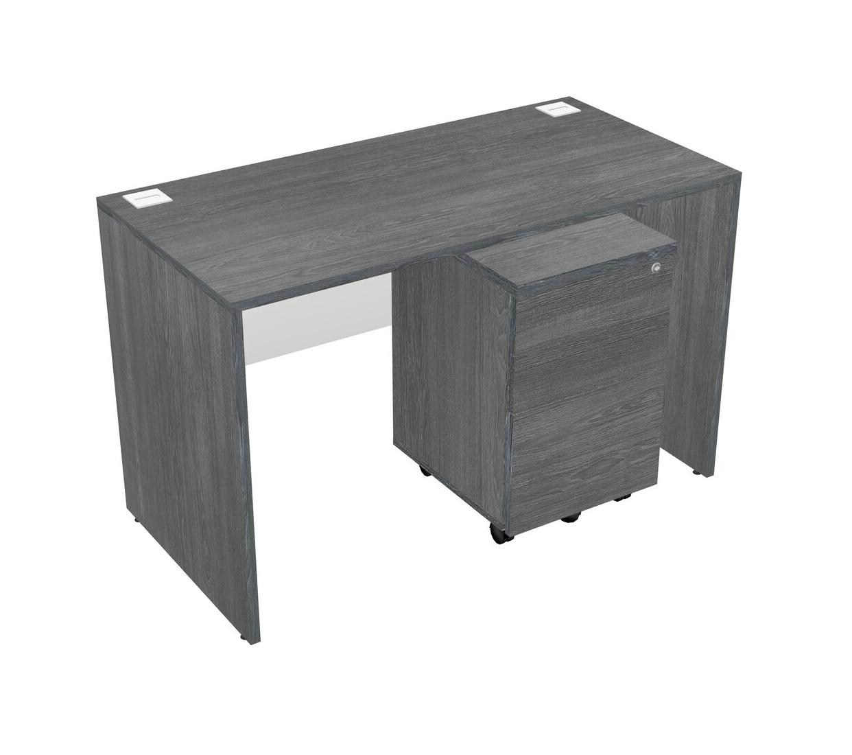 Grey Rectangular Office Desk Plus Grey Wooden Mobile Drawers