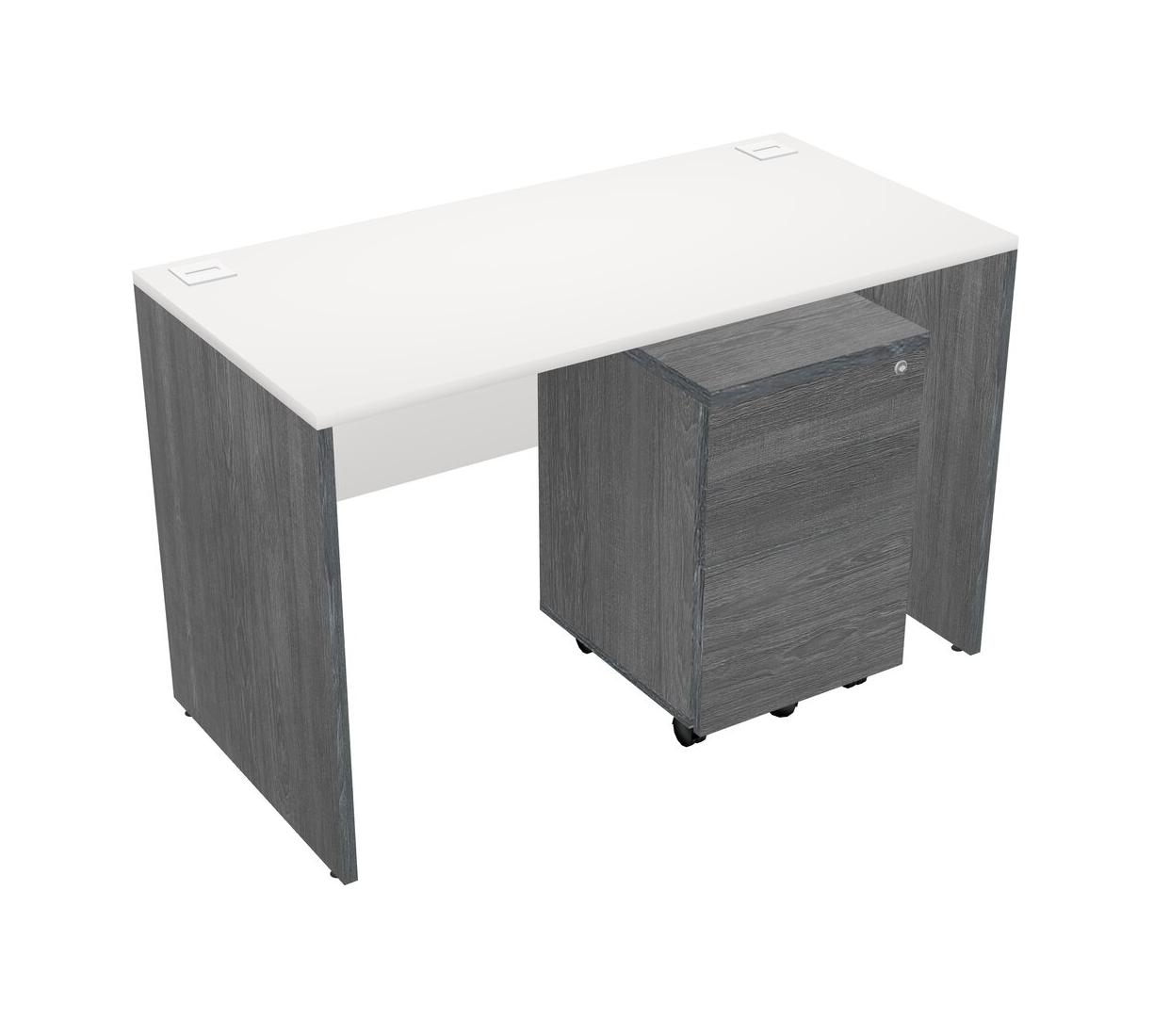 White Rectangular Office Desk Plus Grey Wooden Mobile Drawers