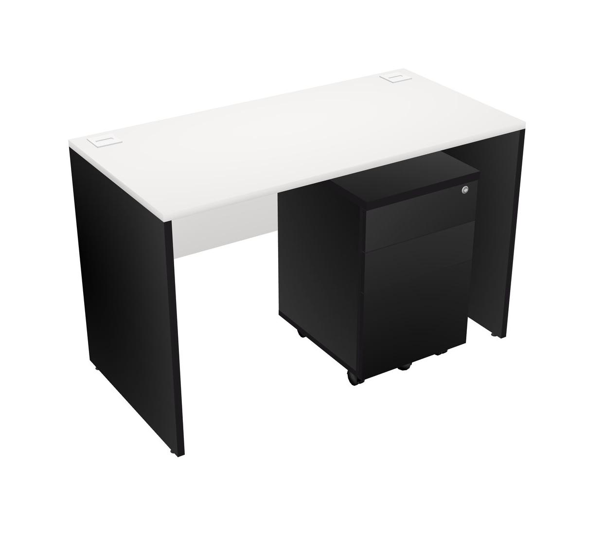 White Rectangular Office Desk Plus Black Wooden Mobile Drawers
