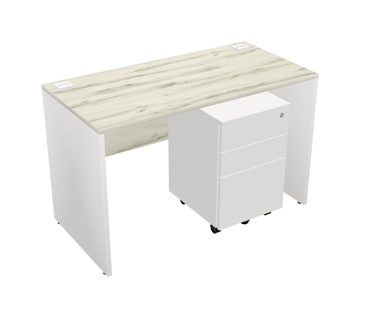 Heinne Holz Rectangular Office Desk Plus White Wooden Mobile Drawers