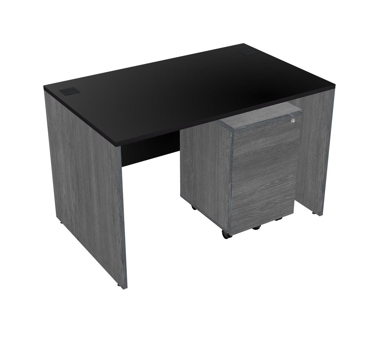 Black Rectangular Office Desk Plus Grey Wooden Mobile Drawers