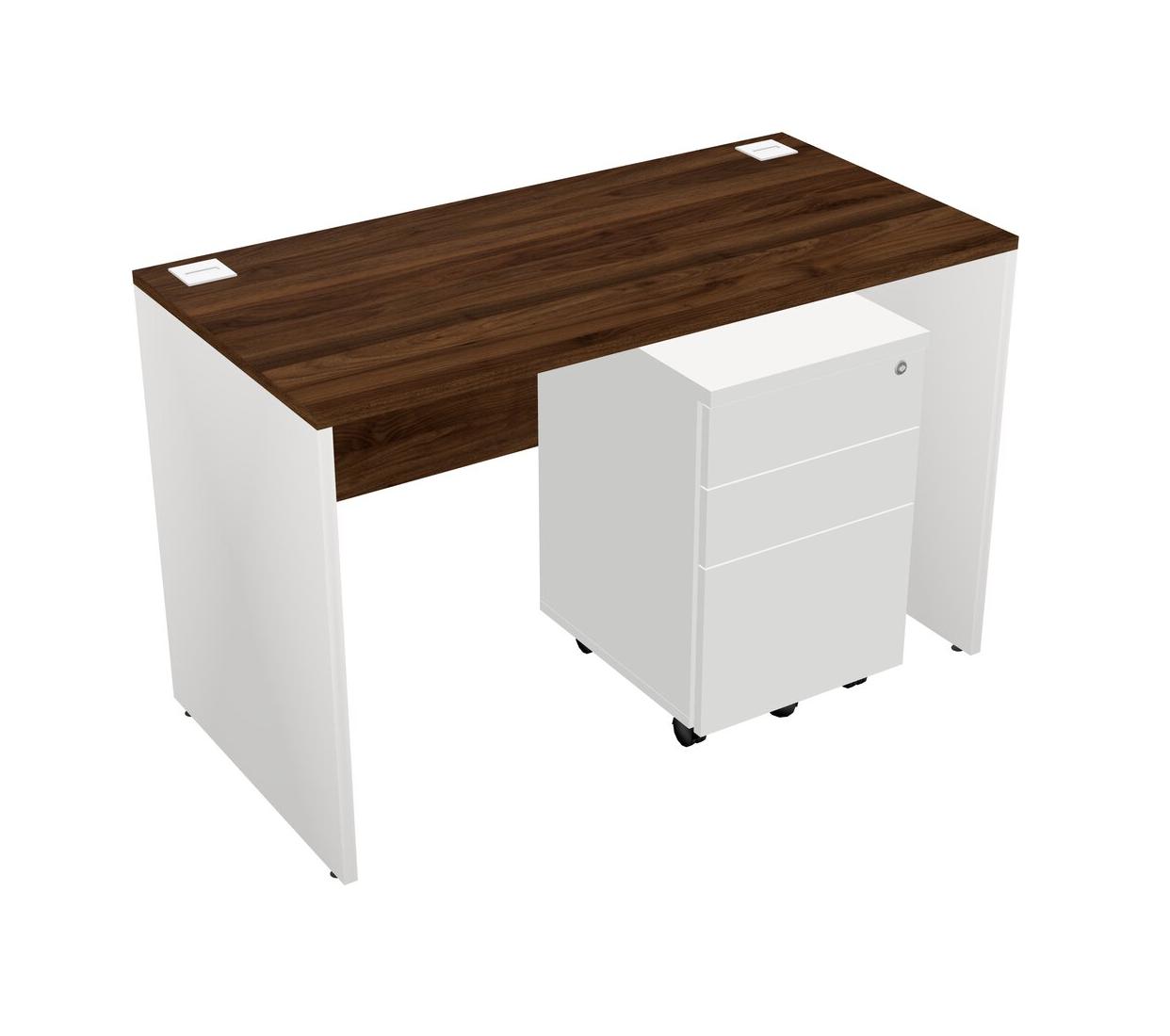 Columbia Walnut Rectangular Office Desk Plus White Wooden Mobile Drawers