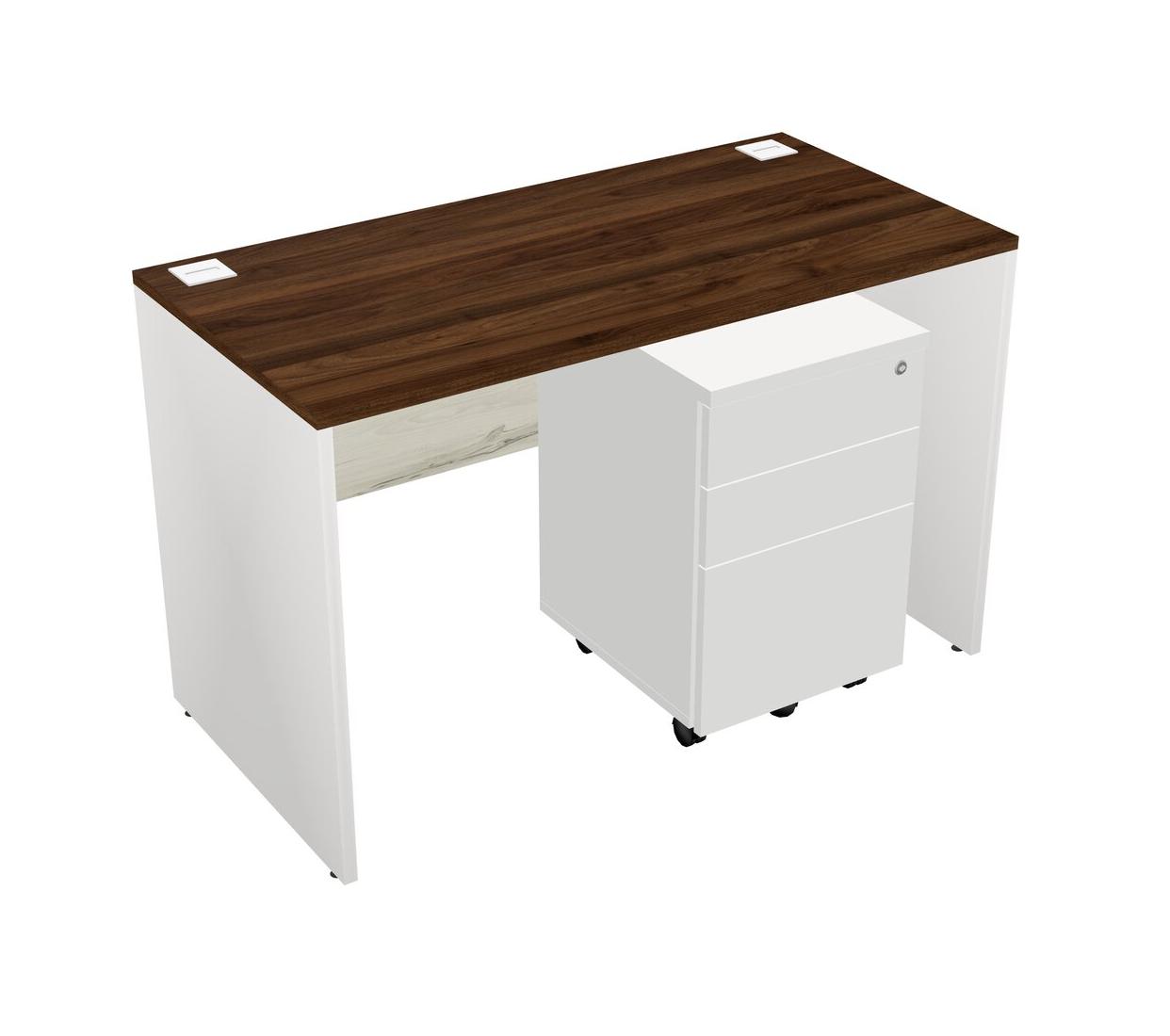 Columbia Walnut Rectangular Office Desk Plus White Wooden Mobile Drawers