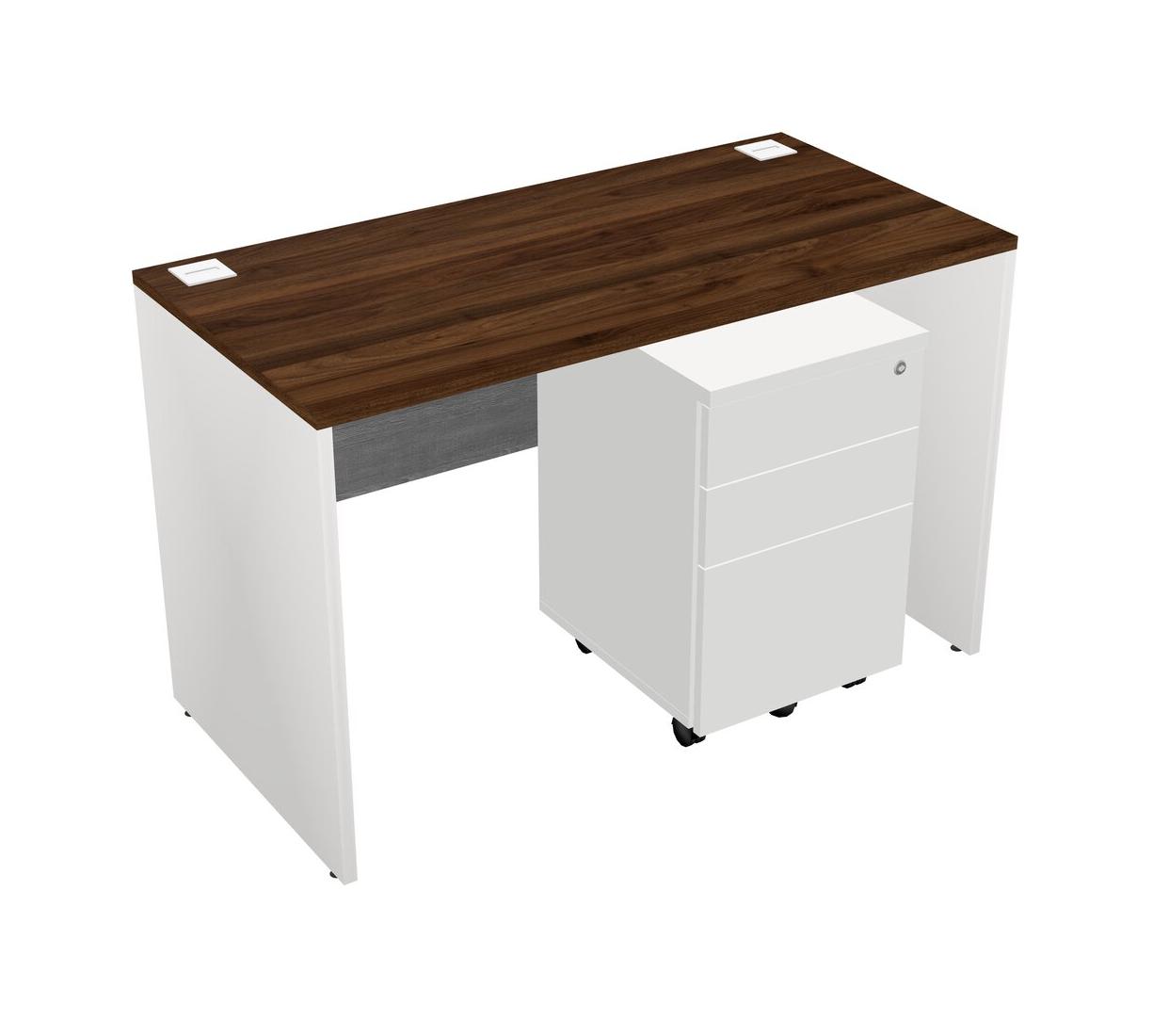 Columbia Walnut Rectangular Office Desk Plus White Wooden Mobile Drawers