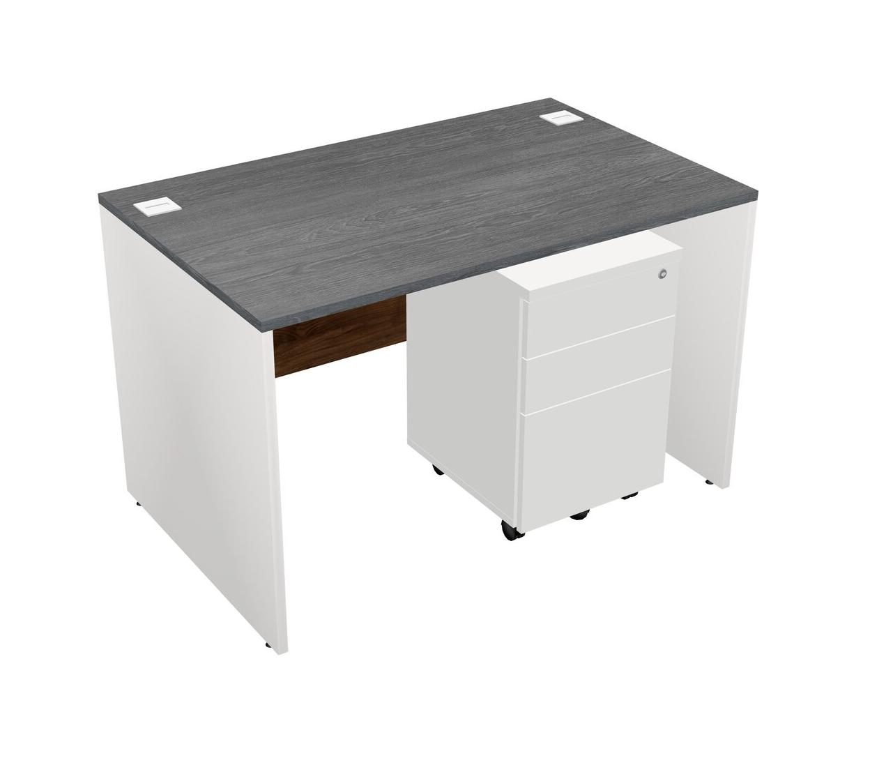 Grey Rectangular Office Desk Plus White Wooden Mobile Drawers