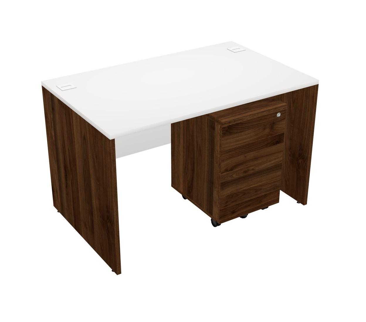 White Rectangular Office Desk Plus Columbia Walnut Wooden Mobile Drawers