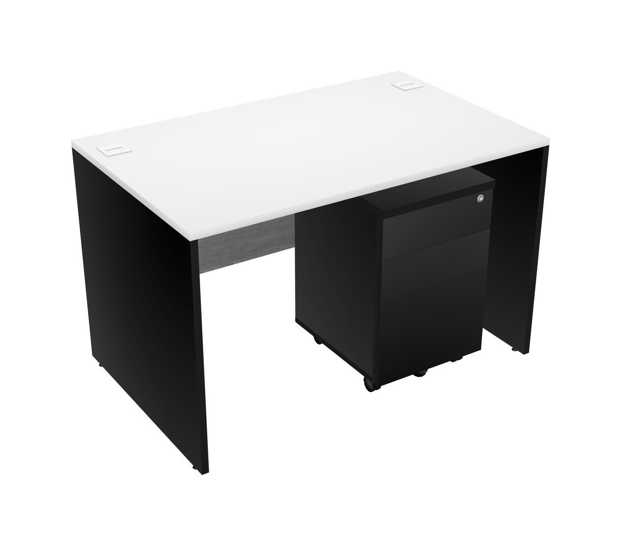 White Rectangular Office Desk Plus Black Wooden Mobile Drawers
