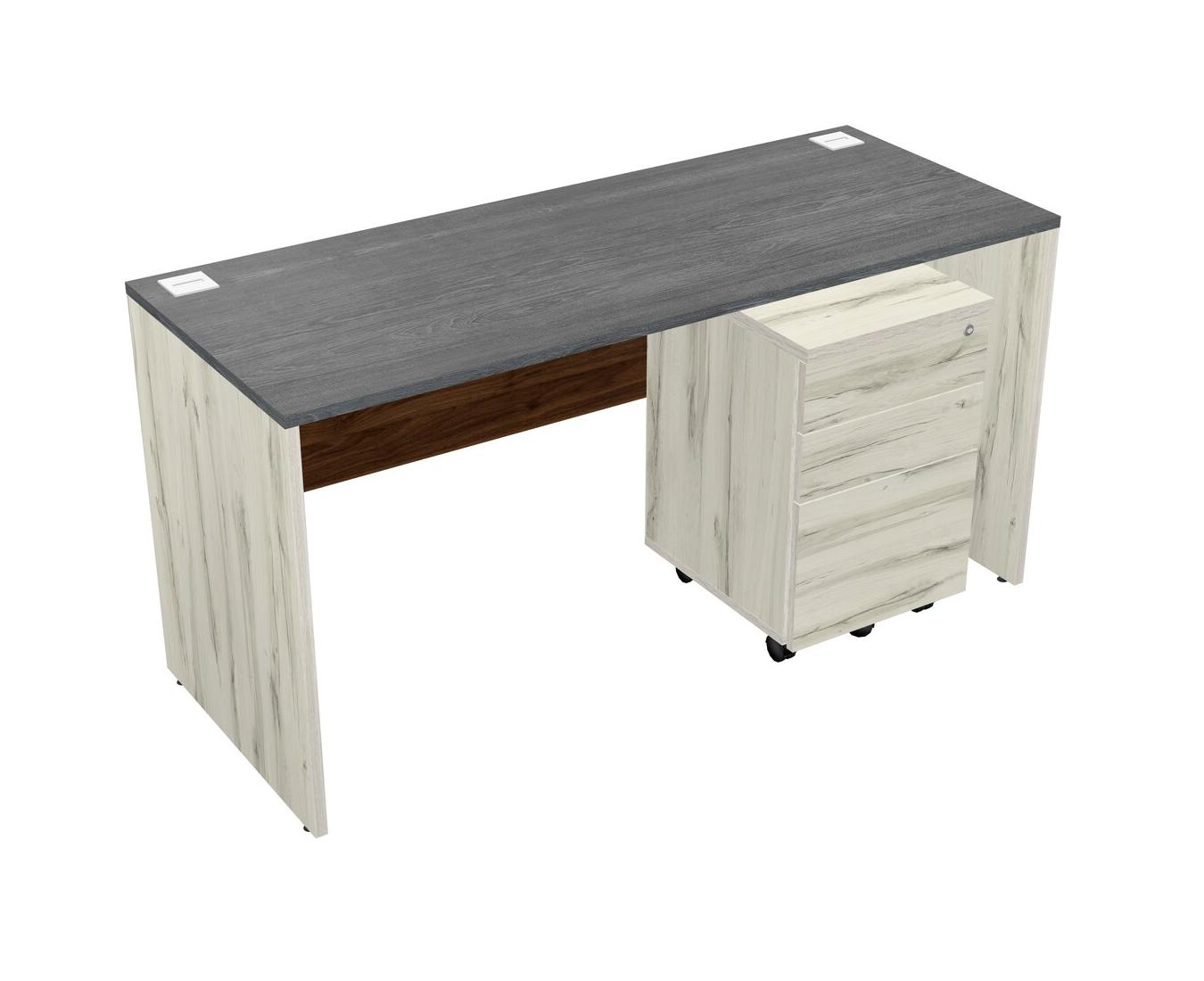 Grey Rectangular Office Desk Plus Heinne Holz Wooden Mobile Drawers