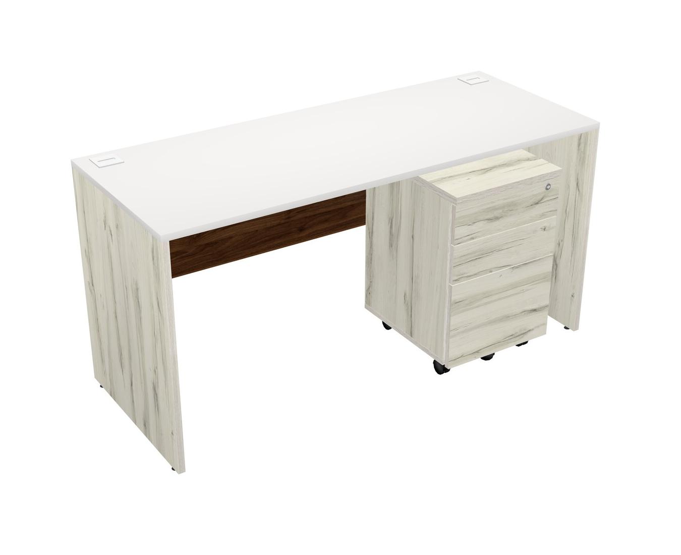 White Rectangular Office Desk Plus Heinne Holz Wooden Mobile Drawers