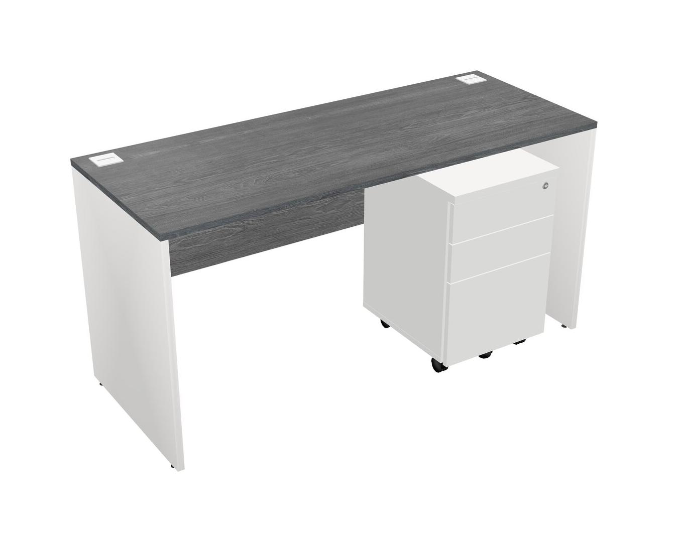 Grey Rectangular Office Desk Plus White Wooden Mobile Drawers