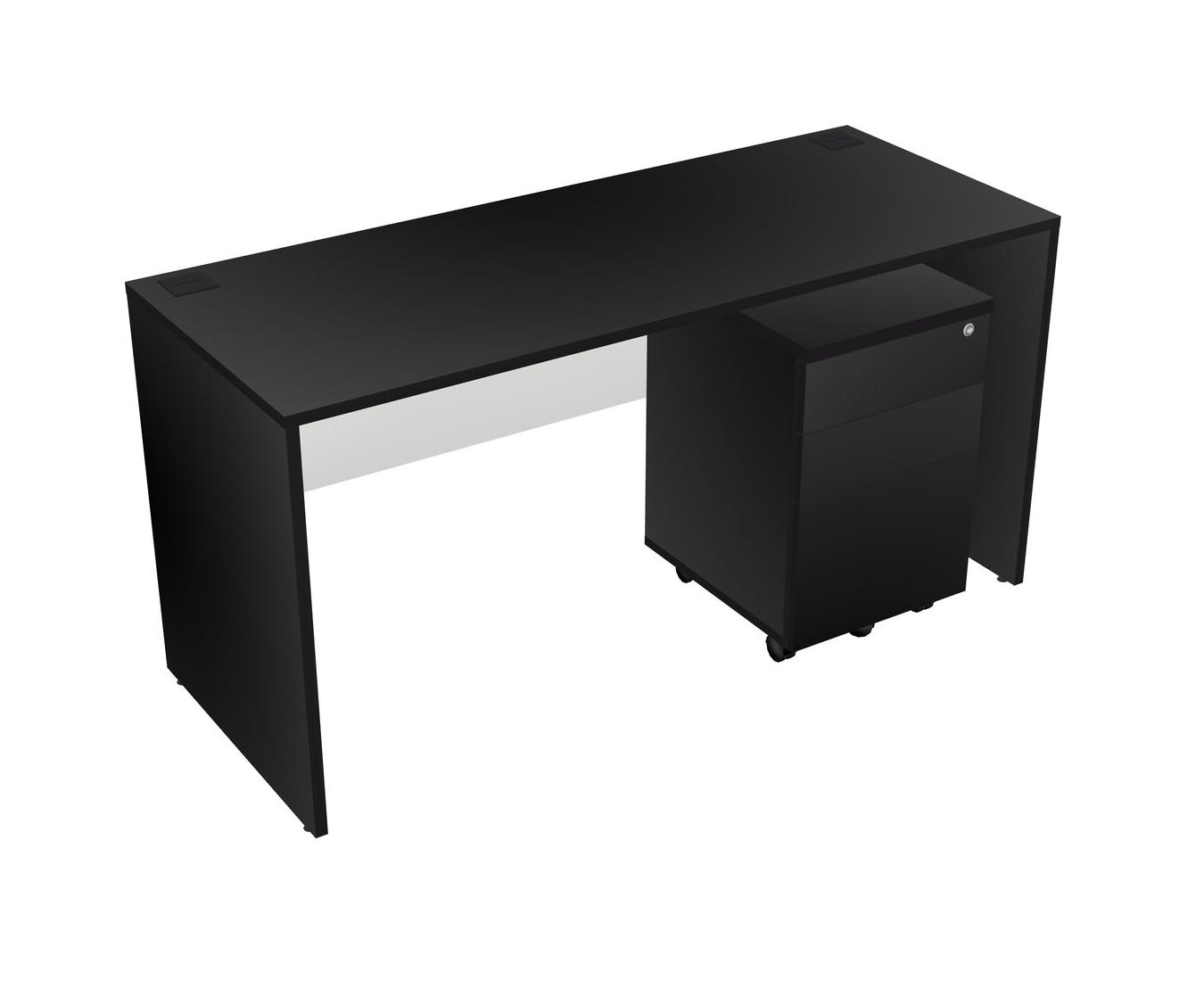 Black Rectangular Office Desk Plus Black Wooden Mobile Drawers