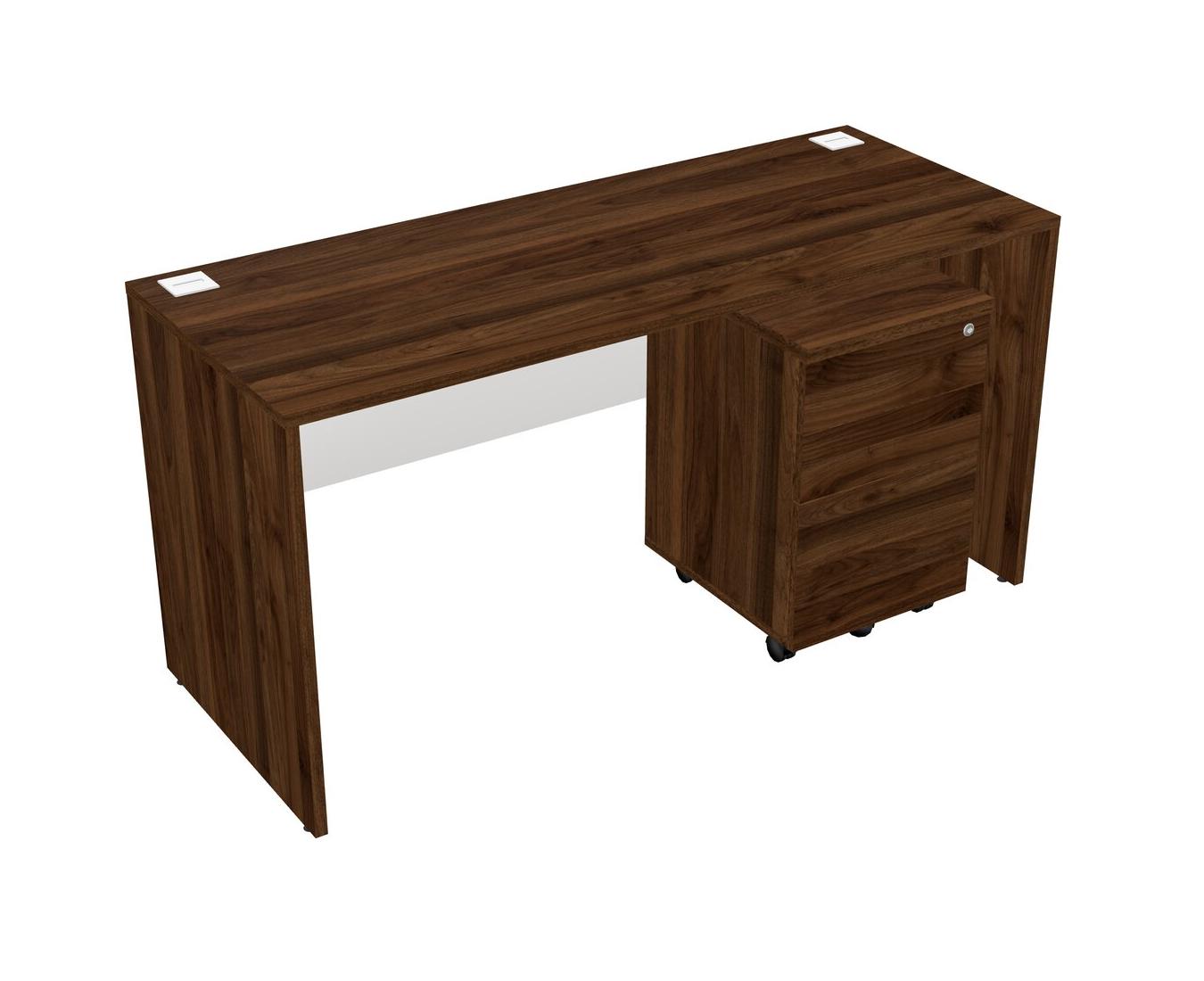 Columbia Walnut Rectangular Office Desk Plus Columbia Walnut Wooden Mobile Drawers