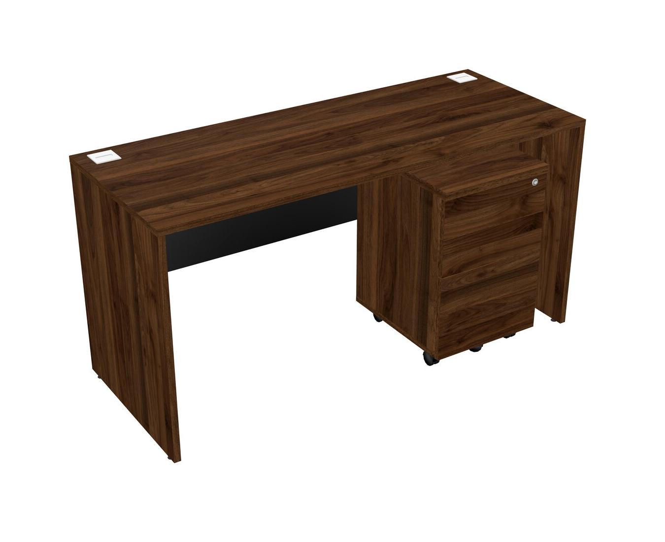 Columbia Walnut Rectangular Office Desk Plus Columbia Walnut Wooden Mobile Drawers