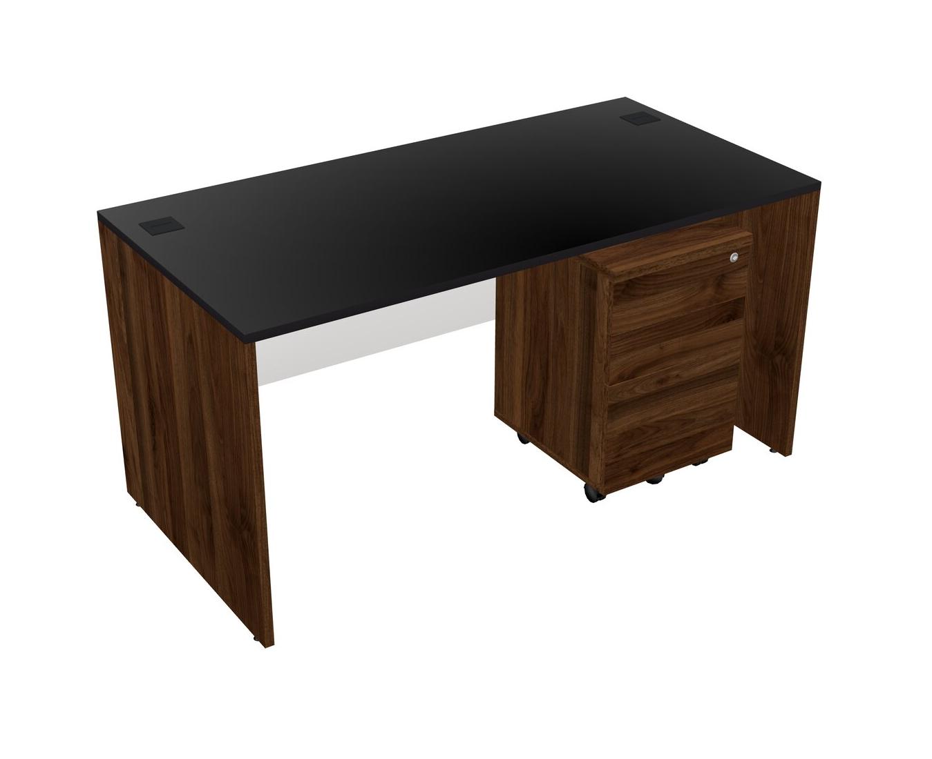Black Rectangular Office Desk Plus Columbia Walnut Wooden Mobile Drawers