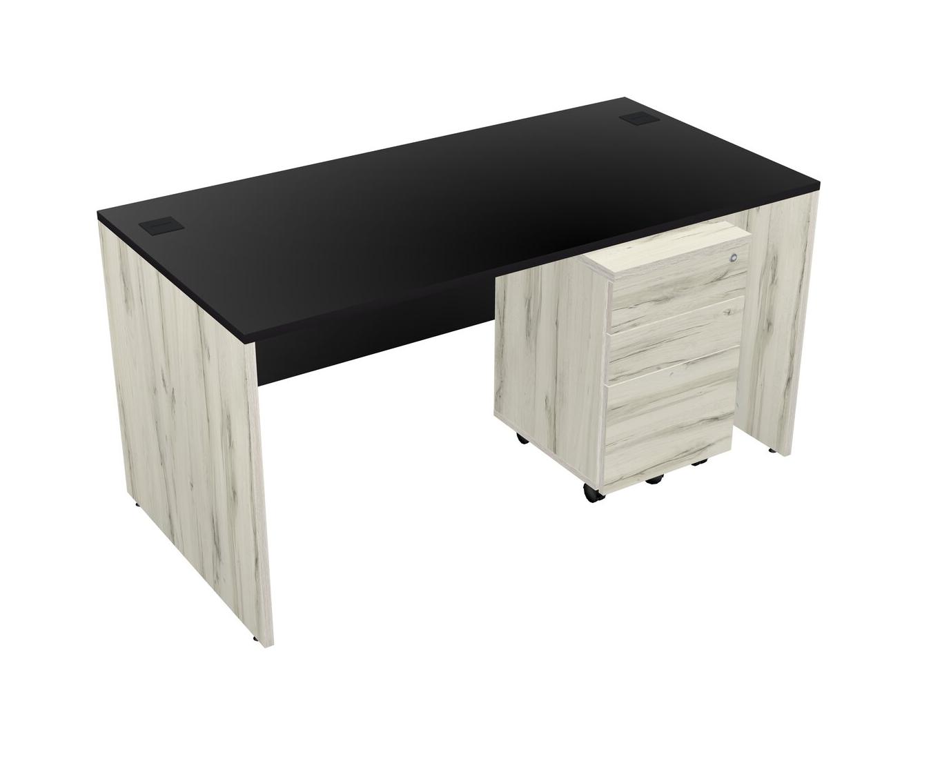 Black Rectangular Office Desk Plus Heinne Holz Wooden Mobile Drawers