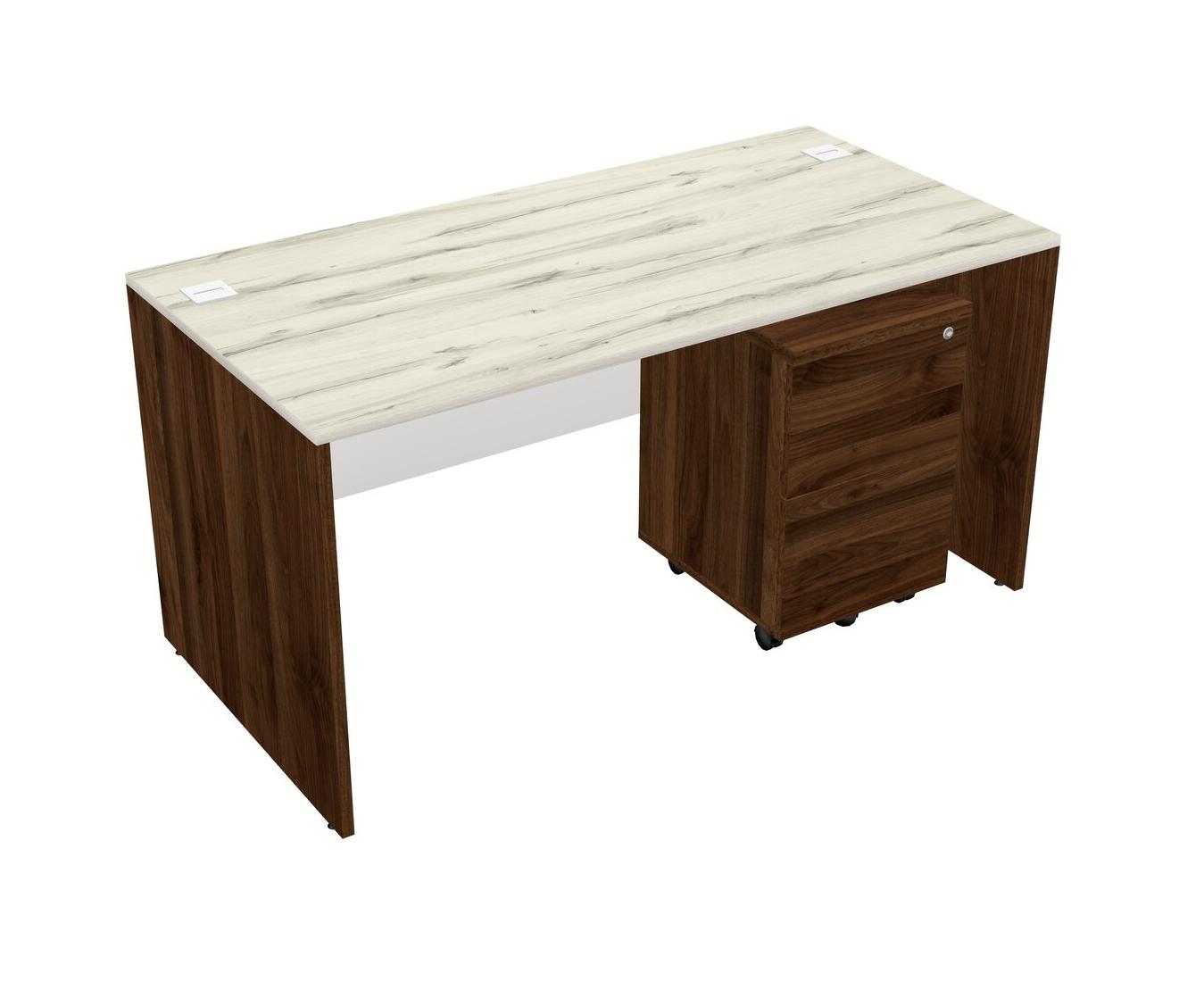 Heinne Holz Rectangular Office Desk Plus Columbia Walnut Wooden Mobile Drawers