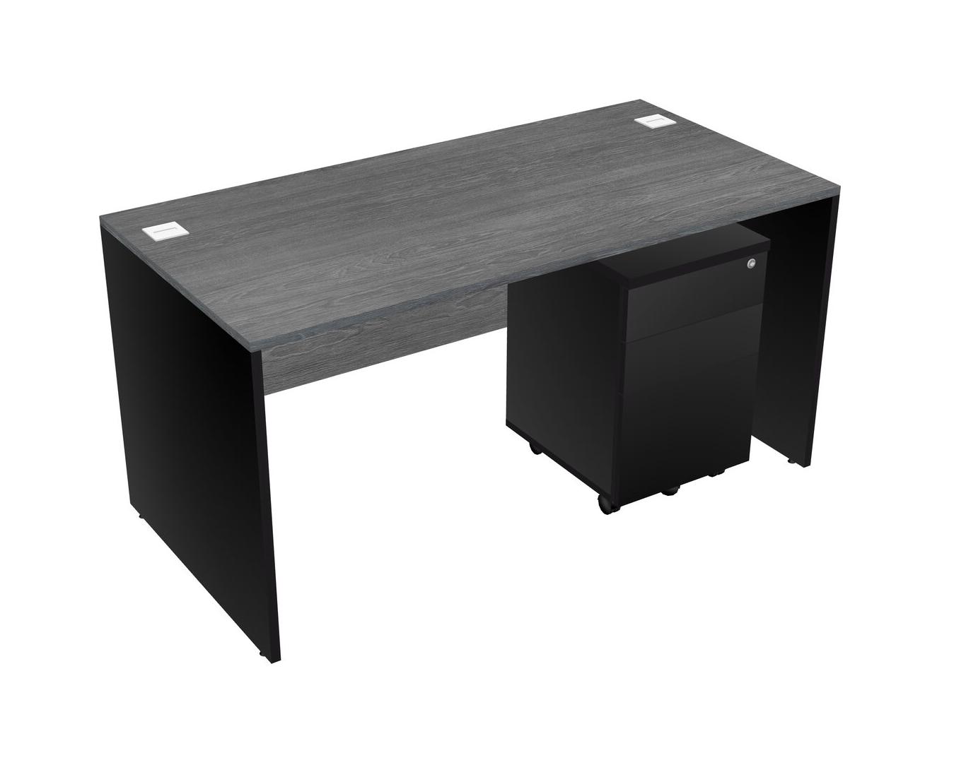 Grey Rectangular Office Desk Plus Black Wooden Mobile Drawers