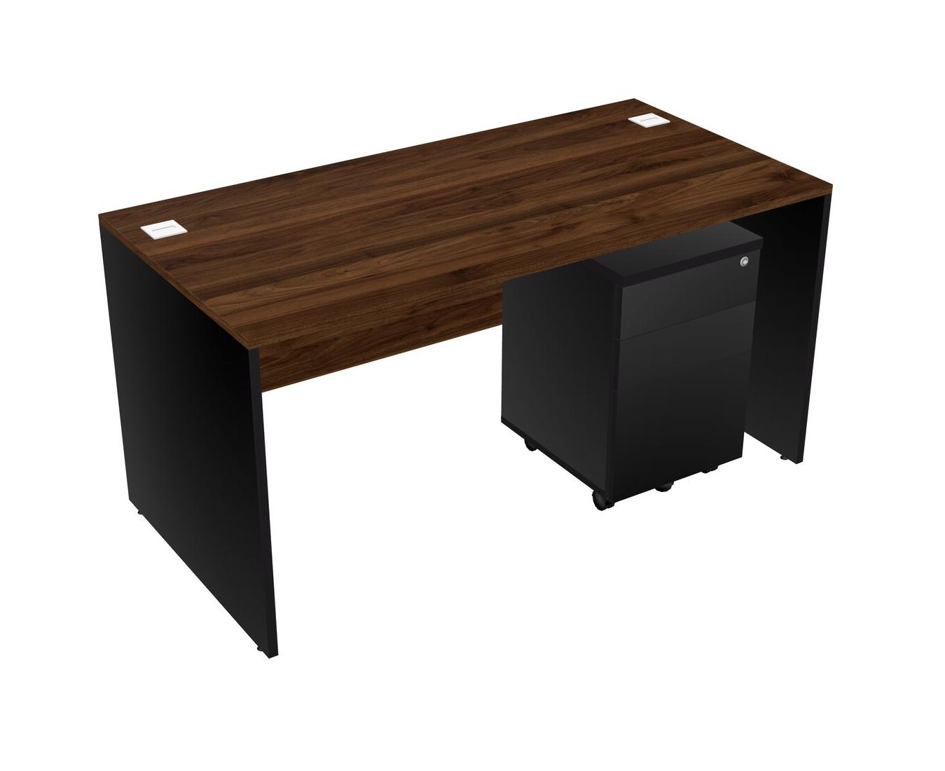 Columbia Walnut Rectangular Office Desk Plus Black Wooden Mobile Drawers